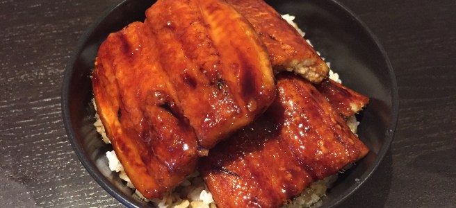 When everything is ready, it is time to assemble. Firstly scoop the rice in a bowl, secondly add a spoon of sauce on the rice, thirdly add the Anago on the rice and finally pour enough sauce over the Anago and rice.