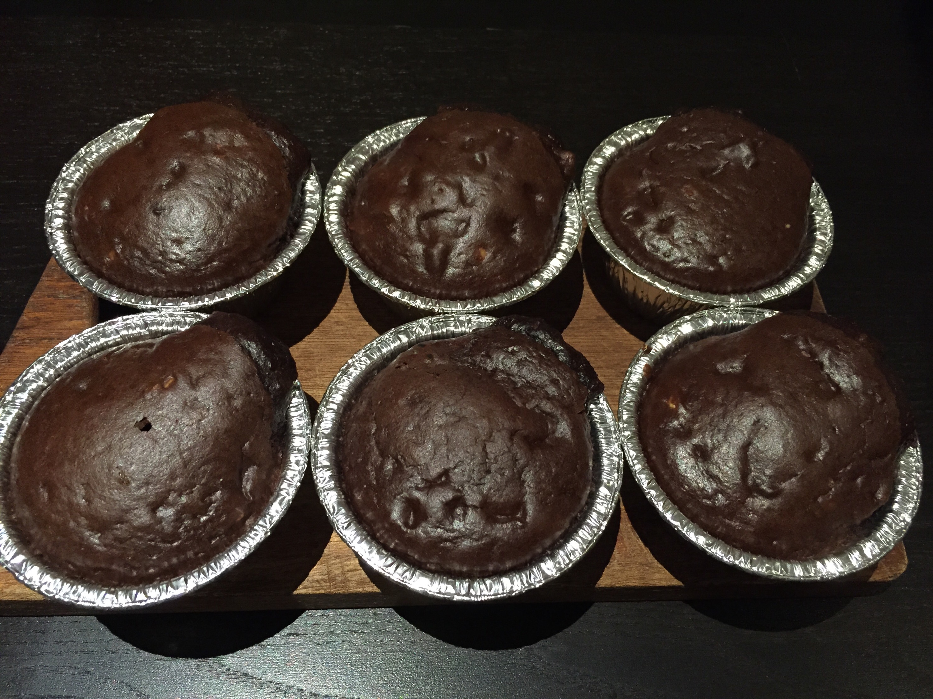 When it is mixed in, lay out the cups and pour in the cake-mix. Put the cups with the mix in the oven for 25-30 min. Check up on the cakes at 25min with sate-skewer and depending on the mix type it can be done or need a little bit more time. (When you poke the skewer down to the bottom of the cup and pull it out; the skewer should be clear or a little bit oily. If it is otherwise, it isn’t done yet.)