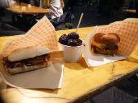 The RAI, Amsterdam largest event location and a place for holding these kinds of grand happenings. The Food Festival was at it’s last day, it started three days earlier on the 26th of november. The four of us walked to the main entrance and were saluted by the security for a look in our bags. It is supposedly not allowed to bring in any food or drinks. In the voyeur was a DJ-Truck playing loud music too welcome the visitors of the event. On the left was the way to the conference area but it was closed off and was not part of the event. On the right side was the road to the large hall were the Food Festival was held. It was huge place and filled with different kinds of people, foodlovers ‘Foodies’, parents with small children, students, expats and many more. The venue was compiled of foodtrucks, the trucks were laid out in a rectangular encirclement having an outer ring and an inner ring. Between the two rings were tables and benches for the visitors to sit and dine. There were two token-shops, where every visitor had to buy tokens in order to buy the food they wanted to consume. One token was €2,50 and the prices at the stands were mostly around 2-3 tokens. However there were some restaurants stands that offered a whole menu or a 3-dish course. Those were more on the expensive side with 4-9 tokens. Drinks can be bought at drinking booths, one token for the ‘souvenir’ drinking-cup and a minimum of one token for the beverage.