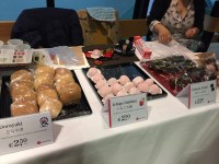 Next up is the plateau area or food area. Multiple food-stands are selling their Japanese cooking-arts or just food. Stands were selling Onigiri, a triangular rice ball with fish or vegetables in it and covert with a ‘nori’ paper (processed seaweed.) green tea stands, sushi-boxes and home made sushi. Sweets stands with matcha-muffins, Doriyaki’s (Doreamon’s favorite), mochi’s and the fish shaped cake Taiyaki. We bought some of those treats and had them for lunch. The Japan Market was nice and may they become a bigger event in the future.