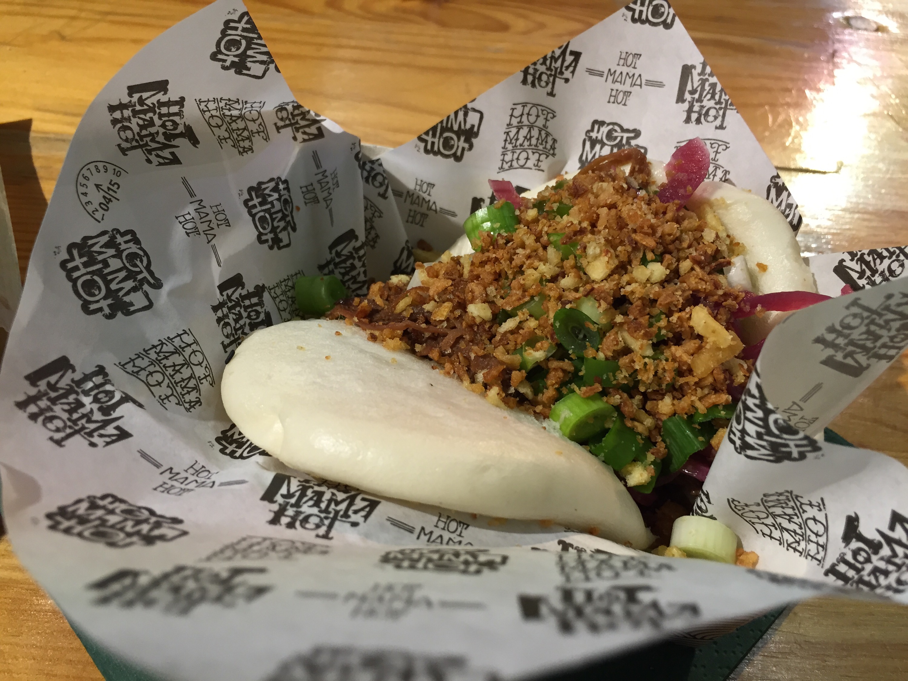 The slow-cooked pulled Pork meat with lots of fried stuff and spring onions on a steamed bun. This is mix of slow-cooked pulled meat and Asiatic soft steamed bun makes it a combination of the modern fusion food. A tasty grub and a change from the regular burger or other fast-food.